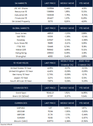 On the markets, the FTSE/JSE All Share Index ended last week modestly higher, up 0.44%, with mining and resource-linked stocks leading gains thanks to robust demand and favourable commodity prices. Financials also performed well, reflecting continued investor confidence in banks and lenders, while industrials lagged amid currency strength and softer sector performance.