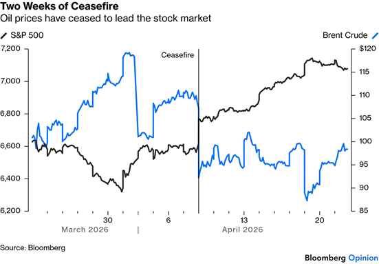 Crude oil prices surged, with Brent topping $100 for the first time in seven trading days. However, the usual inverse relationship between oil prices and U.S. equities has not held since the pause in hostilities three weeks ago. Despite ongoing disruptions, including the continued blockage of the Strait of Hormuz and stalled peace talks, the rise in crude coincided with gains in U.S. equities, highlighting the market’s resilience despite higher inflation risks.